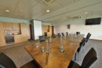The combined space opens onto private balconies overlooking the pitch, offering guests a unique and engaging setting for coffee breaks, networking, or informal discussions. Additional amenities include complimentary high-speed Wi-Fi and air conditioning, ensuring a comfortable and connected environment throughout.